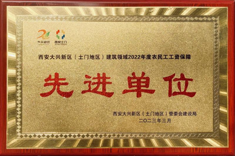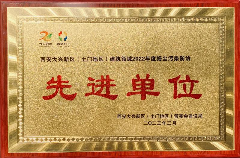 西安市住總建設集團有限公司黃金嘉境項目部被評為“大興新區(土門地區)建筑領域2022年度揚塵污染防治先進單位” “大興新區(土門地區)建筑領域2022年度農民工工資保障先進單位”