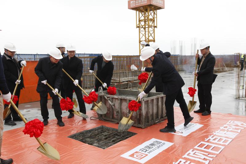 在封頂儀式進行過程中,施工單位項目經理余小健、監理單位副總經理王斌、建設單位副總經理皇甫鑫先后上臺發言致辭,對項目前期建設工作歷程進行了深度回顧和總結,并對項目的未來寄予信心和厚望。最后,安居集團項目建設管理部副部長王磊宣布首棟樓封頂大吉,隨著最后一方水泥的落下,現場禮炮齊鳴,掌聲四起,喜慶非凡,這也標志著項目進入全新階段。
