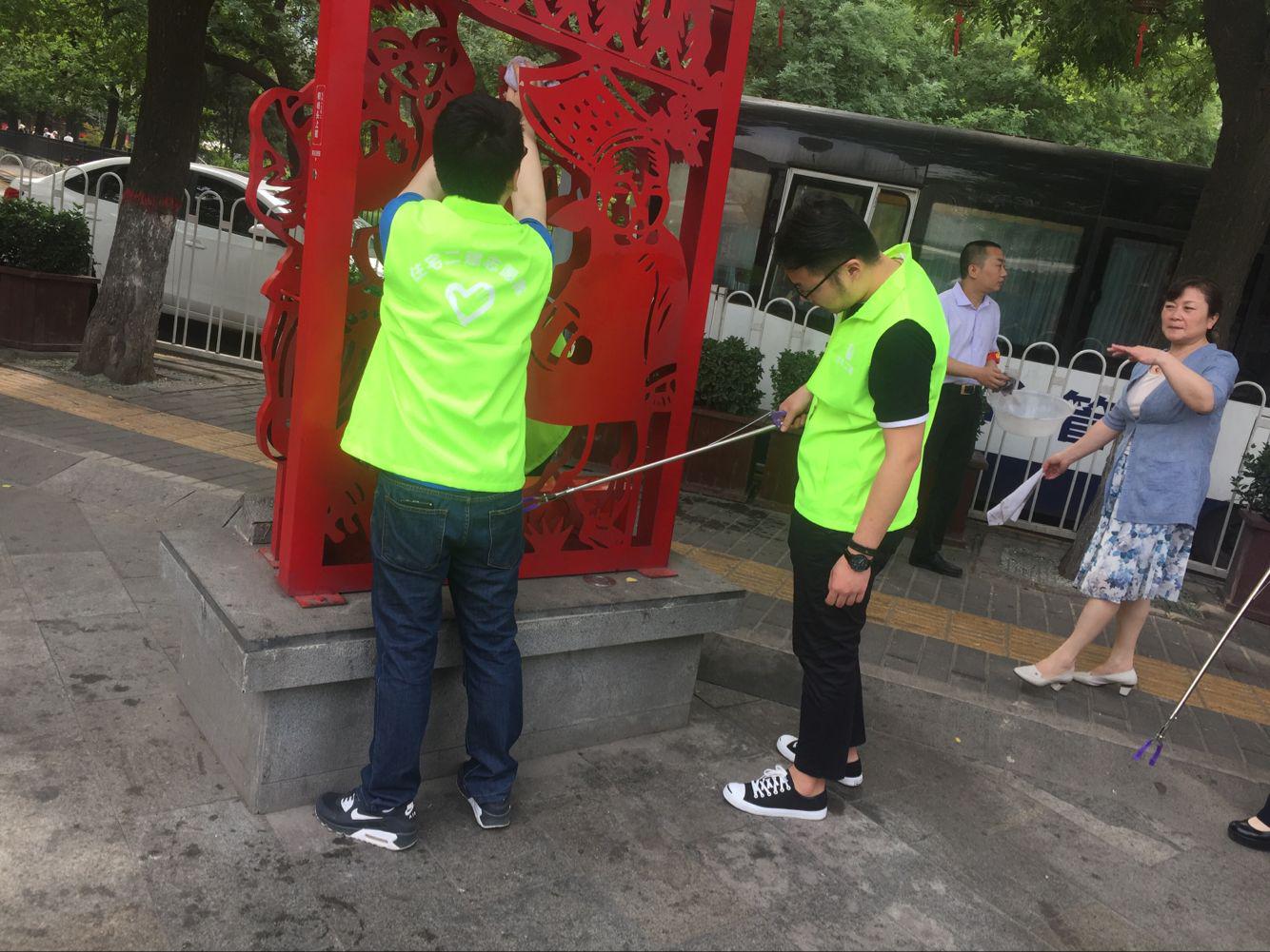 志愿者合理分工,積極配合在指定區域--永興坊周圍清掃路面垃圾,撿拾煙頭雜物,擦洗人行道護欄,清理衛生死角。用實際行動倡導文明新風、塑造城市形象,為打造美麗新城貢獻力量,同時也展示了文明單位的良好風貌。