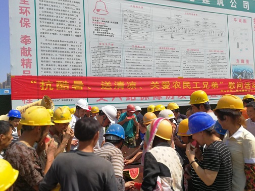 “送清涼·享關愛”住宅二施工一線開展高溫慰問活動